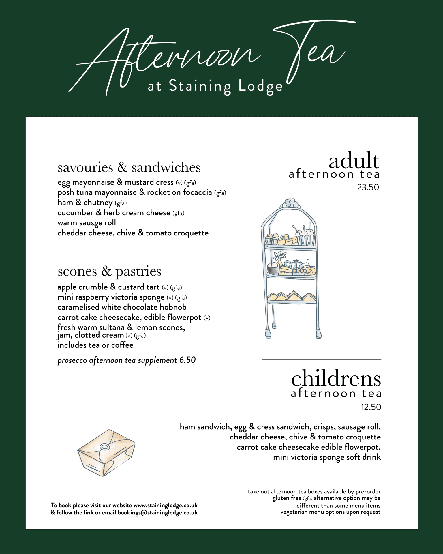 Afternoon tea is served daily from 3pm, please call for availability or book online here. Our in house baked savoury and sweet treat selection is made to order, so we require a minimum 24 hours advance notice and pre payment, which can be done online at the time of booking. We accept group bookings and our menus are perfectly suited for a small but special celebrations such as a birthdays, hen parties or baby showers.