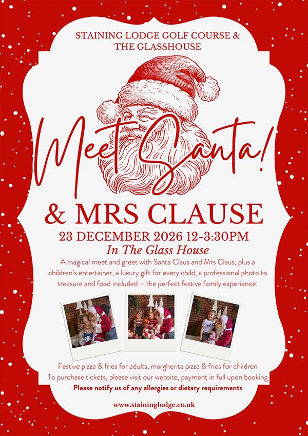 Saturday 23rd December – Meet Santa & Mrs Claus £22 PER TICKET – 12-3:30pm